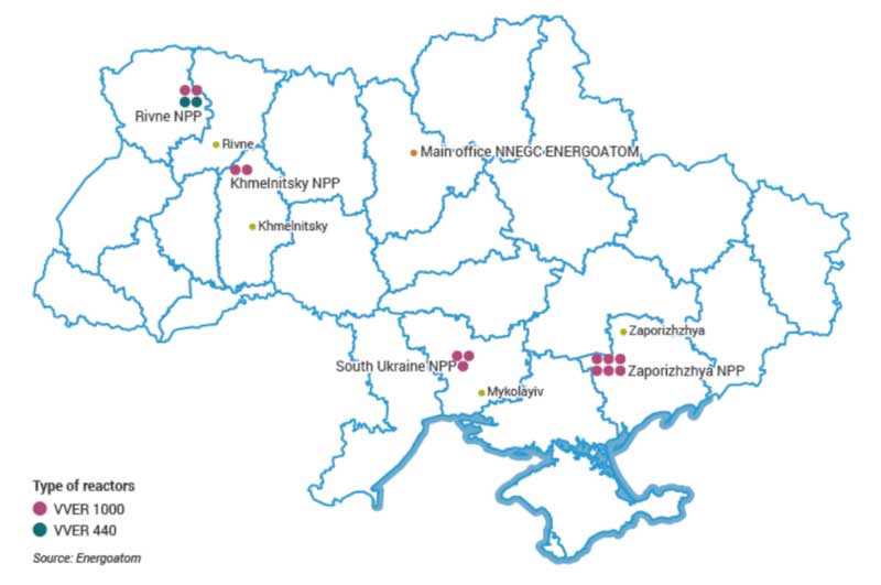 უკრაინის ბირთვული ელექტროსადგურების რუკა