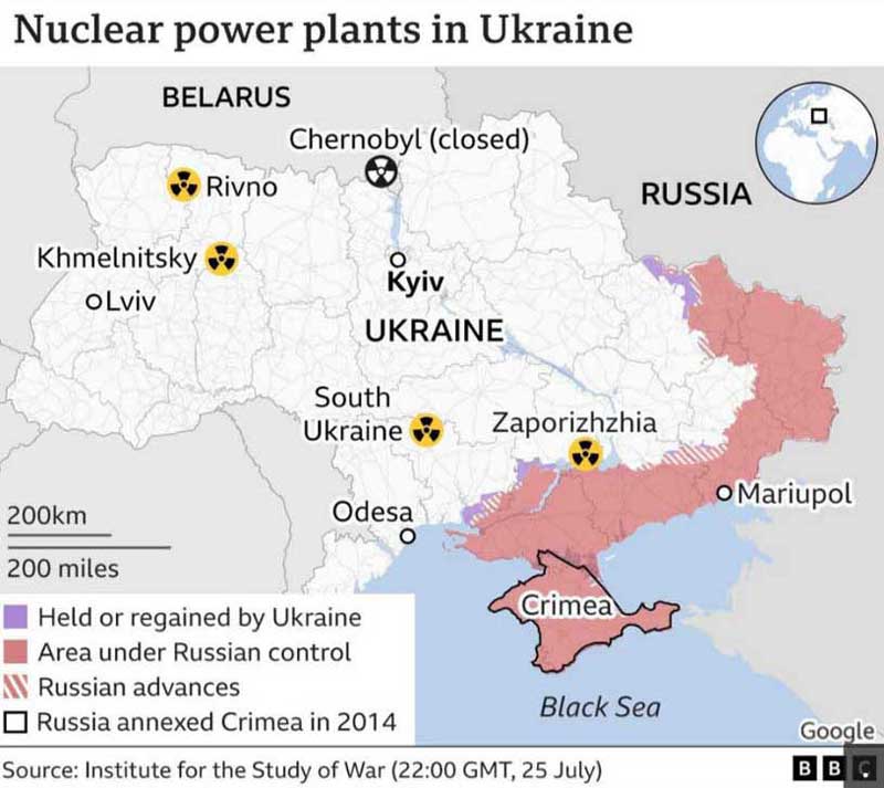 დასავლური მედია ივლისის თვეში აქტიურად საუბრობს იმის შესახებ, რომ რუსეთი იყენებს ზაპორიჟიას ბირთვულ ელექტროსადგურს, როგორც სამხედრო ბაზას შეტევის განსახორციელებლად, რაც უკიდურესად ზრდის ელექტროსადგურის უსაფრთხოებასთან დაკავშირებულ რისკებს.